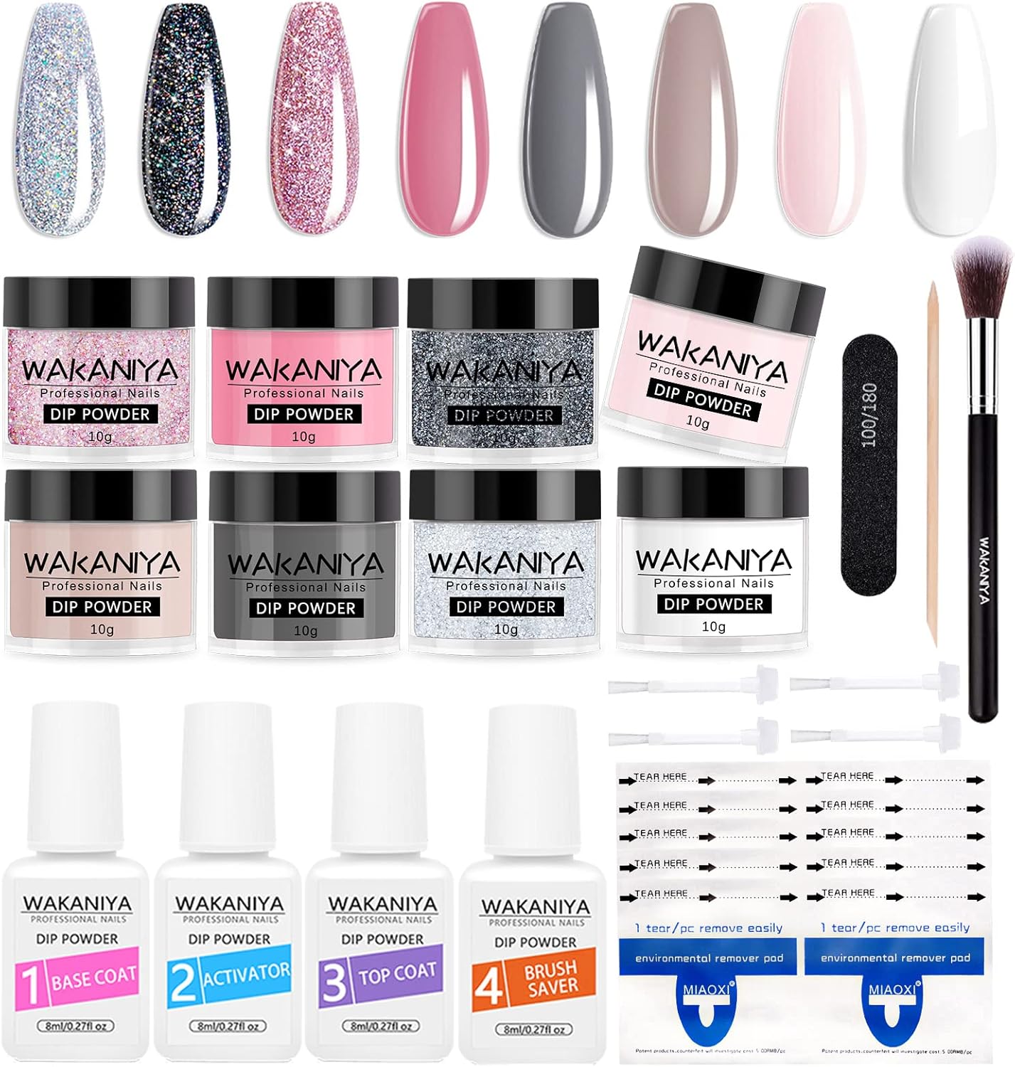 Dip Powder Nail Kit 8 Colors Pink Black Glitter Dipping Powder With Base Activator Top Coat Dip Nail Powder Starter Kit For Beginners Diy French Dip Manicure Kits No Need Uv Lamp